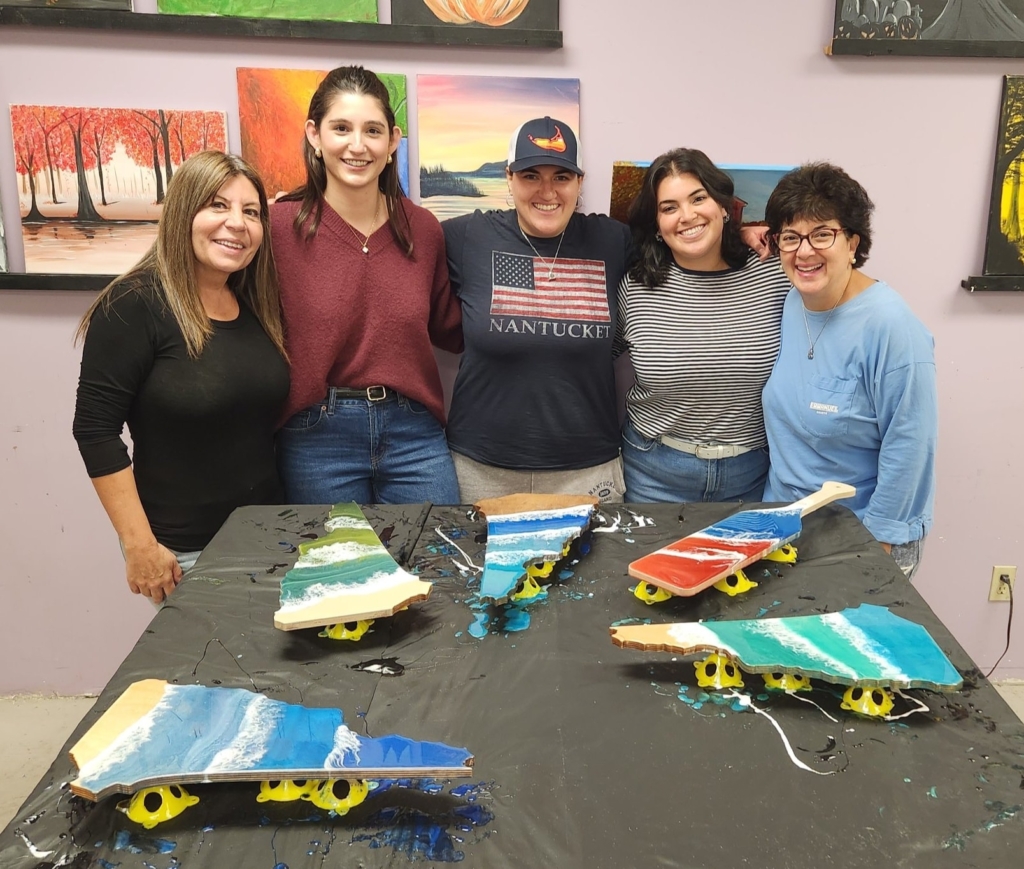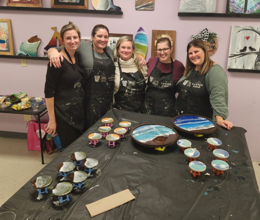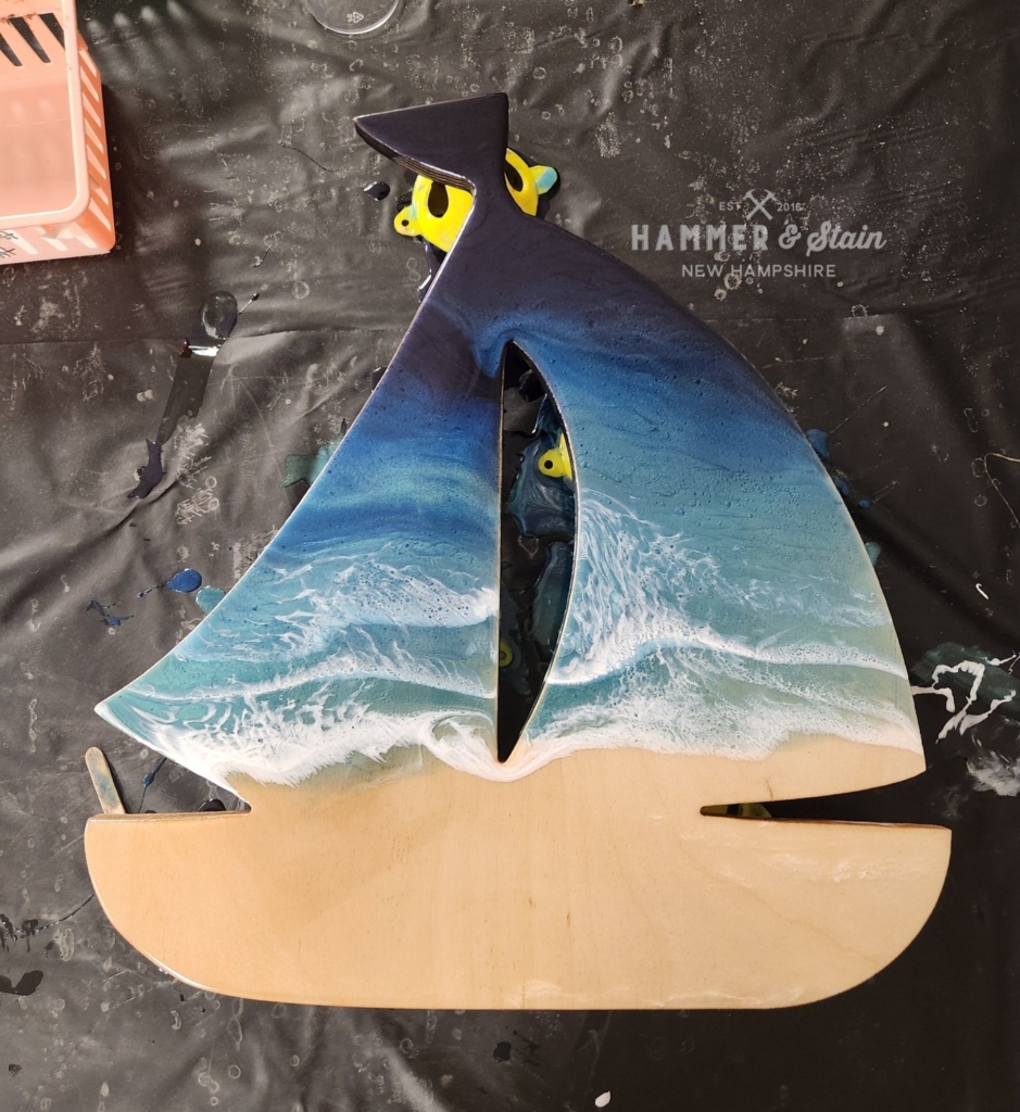Join us for our NEW RESIN ART POUR workshop where you can make your own DIY Resin Art Shape Project! We will teach you step-by-step how to create your own gorgeous project – You can hang them on display inside or outside! You get to choose your own stain & paint colors at the workshop to use to create your very own resin art project – make it a beachy theme or choose other colors to match your home decor. Shapes are 16-18″ THIS CLASS WILL MAX AT 16 spots due to the nature of the projects