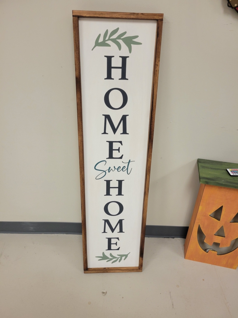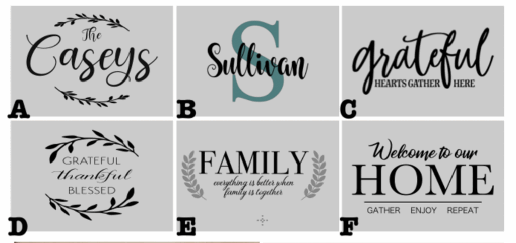 FULL GALLERY :  *PORCH PLANKS  – *ROUNDS – *CENTERPIECE BOXES – *TRAYS/ NOODLEBOARDS – *PALLET SIGNS –  *FRAMED SIGNS