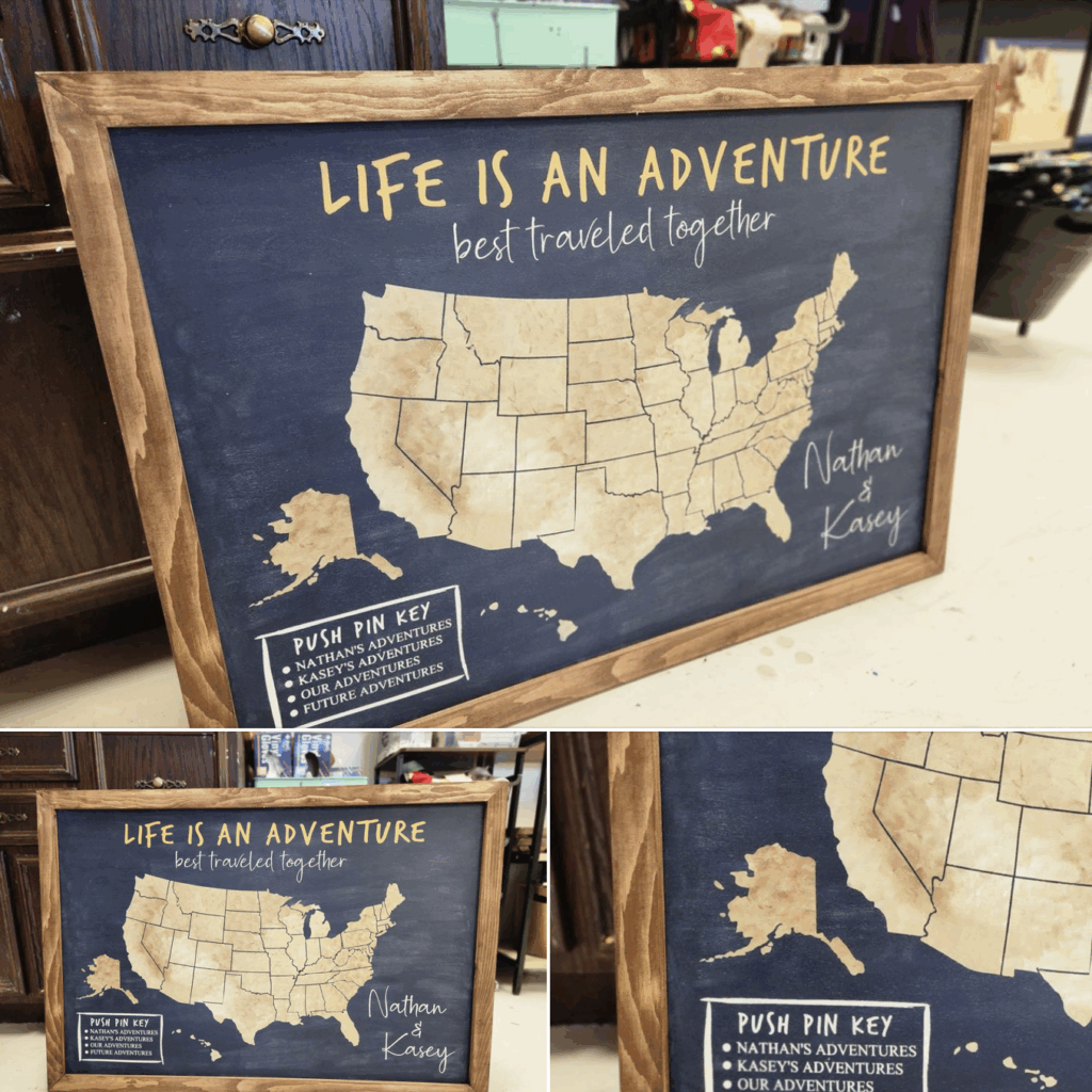 The Canvas Roadshow/ Hammer & Stain is the perfect place to escape and create! Join our public DIY Workshops were we will guide you through a step by step process of transforming unfinished projects into personalized artistic creations. You will be able to customize your own wood project using our wide selection of stain and paint. Want to explore a little more? Try techniques to enhance your project or while you are in studio check out our accessories to make your sign truly one of a kind.